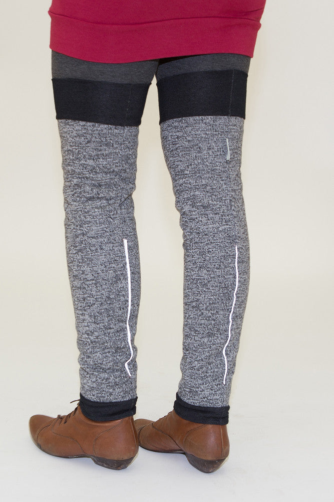 Pull them on over your pants on the way to the office, or over your lacy stockings on your way out on Friday night - these wool blend leg warmers are bonded to a breathable water & windproof membrane, and then lined with a fuzzy fleece to keep your legs warm and protected from wind and rain. They also have a reflective stripe on the back for visibility at night. And, they are long, so your beautiful gambs can stay cozy all the way up to your thighs. Easy to pack in your bag, and easy to put on and take off - Walk, Run, or Bike, any way you travel, be warm and be seen.
